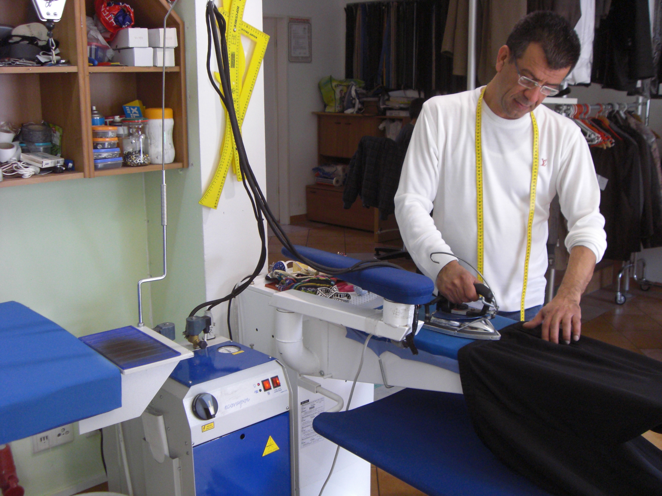 "Annahme aller Textilien zur Reinigung Wäscherei und heiß Mangel" |